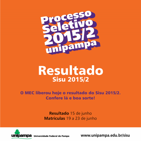 Foi divulgado nesta segunda-feira, 15, o resultado do primeiro processo seletivo para o curso de Direito da Unipampa, realizado por meio do Sistema de Seleção Unificada (Sisu) 2015/2. OS candidatos selecionados na Chamada Regular podem conferir sua colocação em sisu.mec.gov.br. Ao todo, se inscreveram para uma das 50 vagas ofertadas 5.168 candidatos, o que significa uma densidade de 103,36 candidatos por vaga.