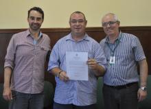 Na tarde desta terça-feira, 23, ocorreu a posse de novos servidores da Universidade Federal do Pampa (Unipampa). Ao todo, 12 servidores foram empossados para atuarem nos municípios de Bagé, Itaqui, Jaguarão, Santana do Livramento e Uruguaiana. A cerimônia foi realizada na sala de reuniões do Gabinete da Reitoria com a presença do vice-reitor, professor Maurício Aires.