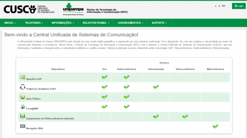 Procurar o número de um ramal da Unipampa ou esclarecer dúvidas sobre os serviços de telecomunicação da Universidade está mais fácil desde dezembro. O Núcleo de Tecnologia da Informação e Comunicação disponibilizou, antes do recesso de final de ano, o portal Cusco, sigla para Central Unificada de Sistemas de Comunicação.